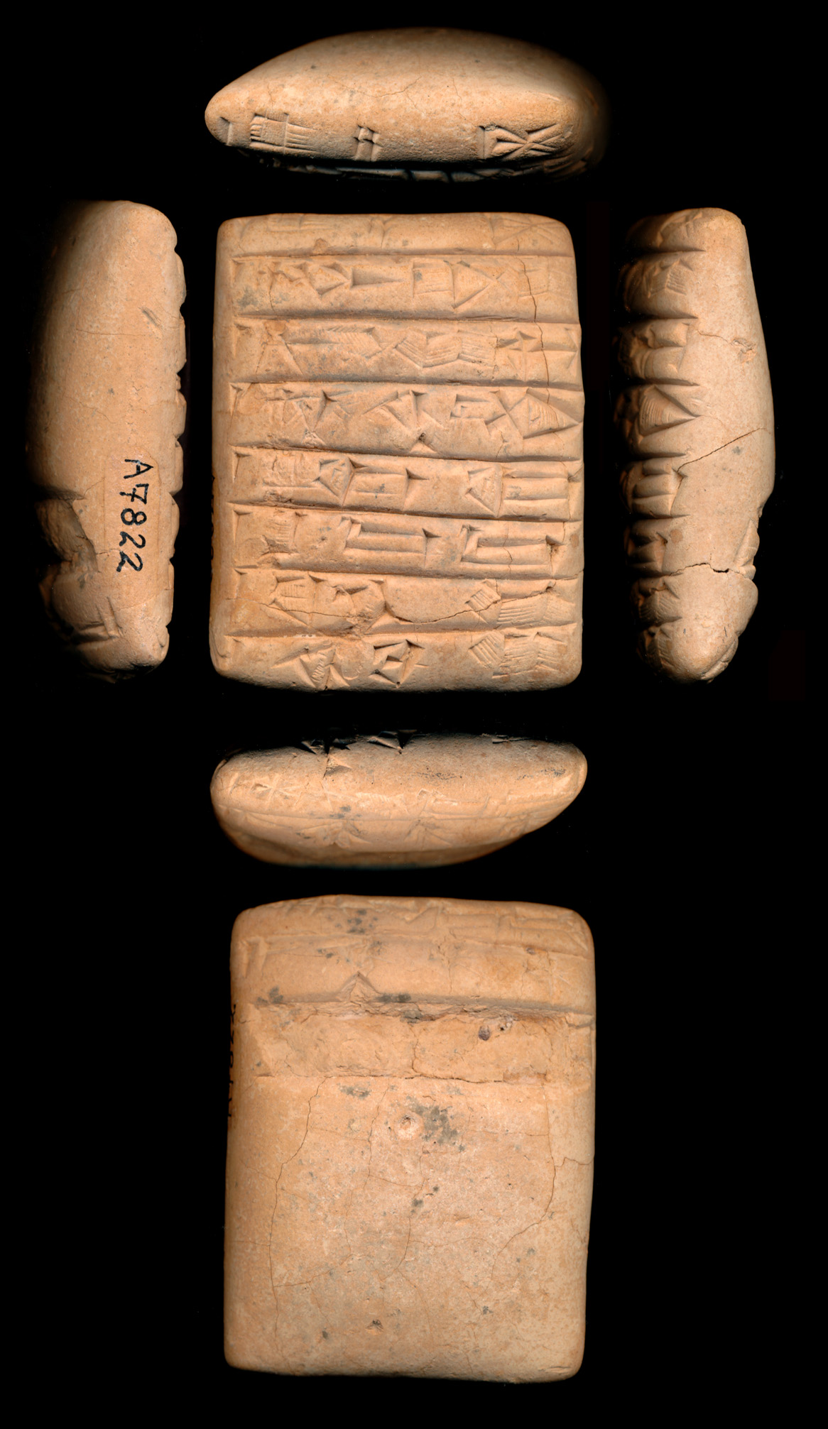 Administrative tablet excavated in Ešnunna (mod. Tell Asmar), dated to the Old Akkadian (ca. 2340-2200 BC) period and now kept in Institute for the Study of Ancient Cultures West Asia & North Africa Museum, Chicago, Illinois, USA