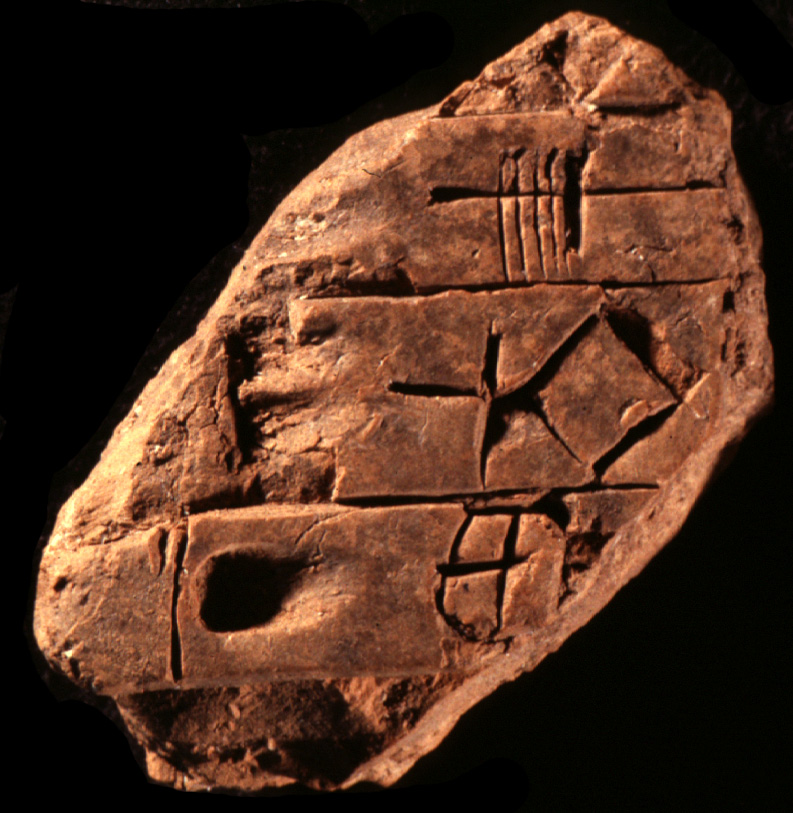 Administrative tablet excavated in Uruk (mod. Warka), dated to the Uruk III (ca. 3200-3000 BC) period and now kept in German Archaeological Institute, Berlin, Germany