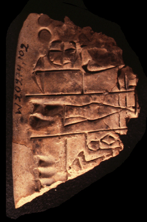 Administrative tablet excavated in Uruk (mod. Warka), dated to the Uruk III (ca. 3200-3000 BC) period and now kept in German Archaeological Institute, Berlin, Germany