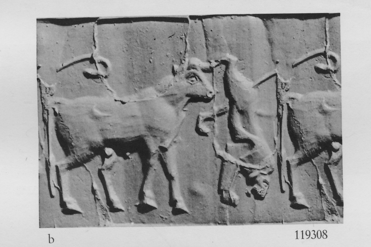 Administrative Cylinder seal excavated in Uruk (mod. Warka), dated to the Uruk IV (ca. 3350-3200 BC) period and now kept in British Museum, London, UK