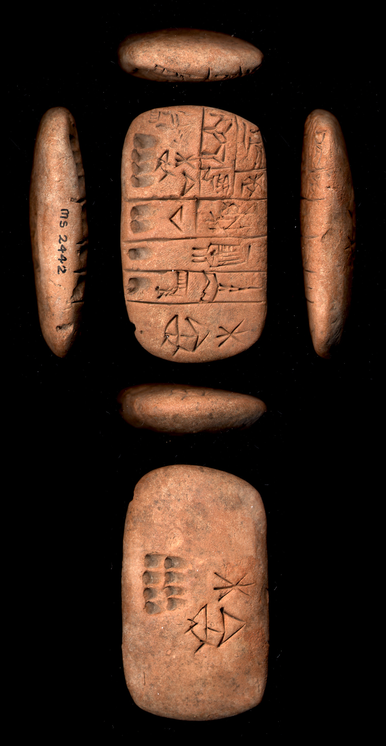 Administrative tablet excavated in Umma (mod. Tell Jokha), dated to the Uruk III (ca. 3200-3000 BC) period and now kept in Schøyen Collection, Oslo, Norway