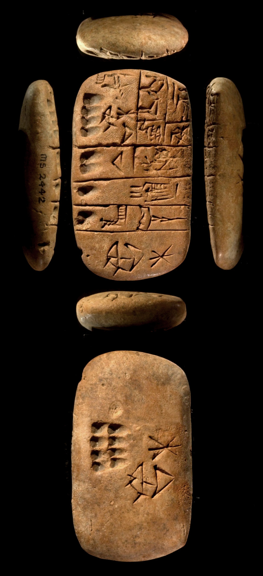 Administrative tablet excavated in Umma (mod. Tell Jokha), dated to the Uruk III (ca. 3200-3000 BC) period and now kept in Schøyen Collection, Oslo, Norway